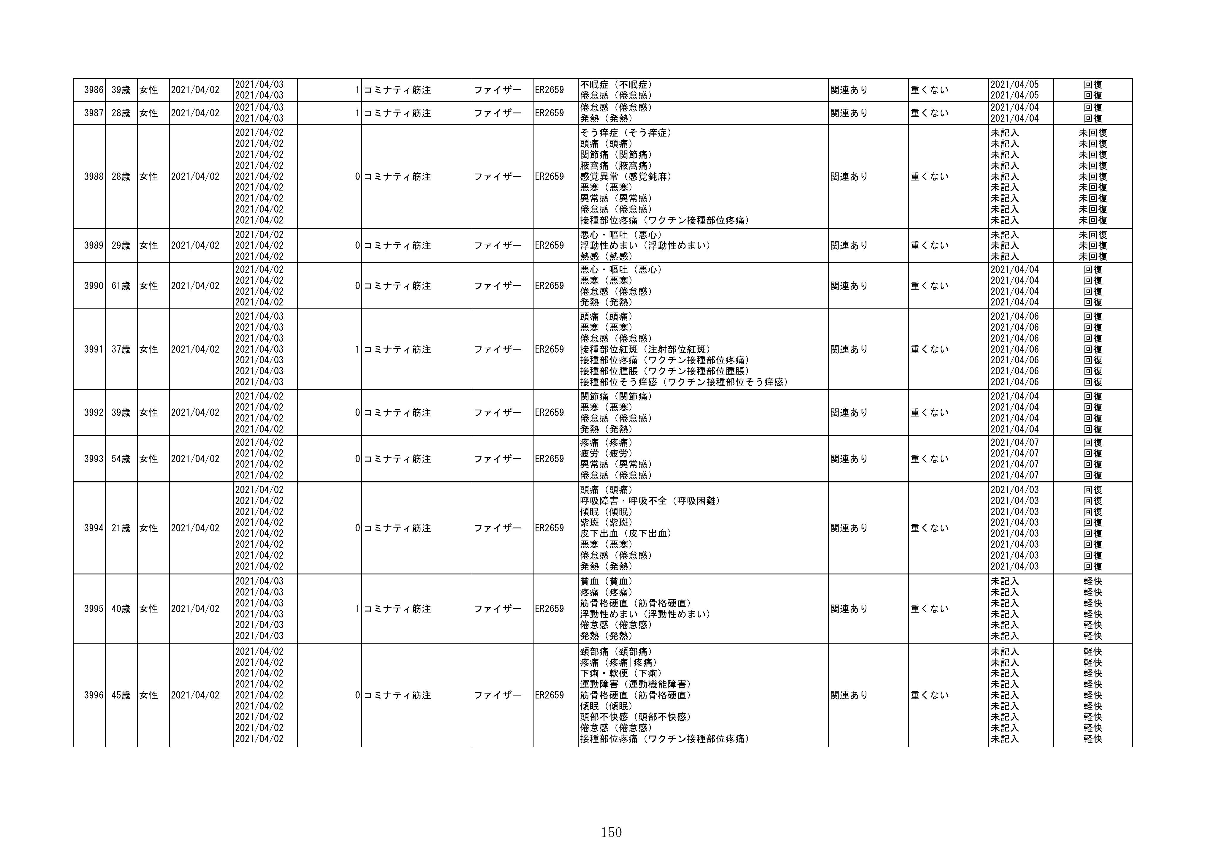 資料1-1-2-1 予防接種法に基づく医療機関からの副反応疑い報告状況について(コミナティ筋注・報告症例一覧)