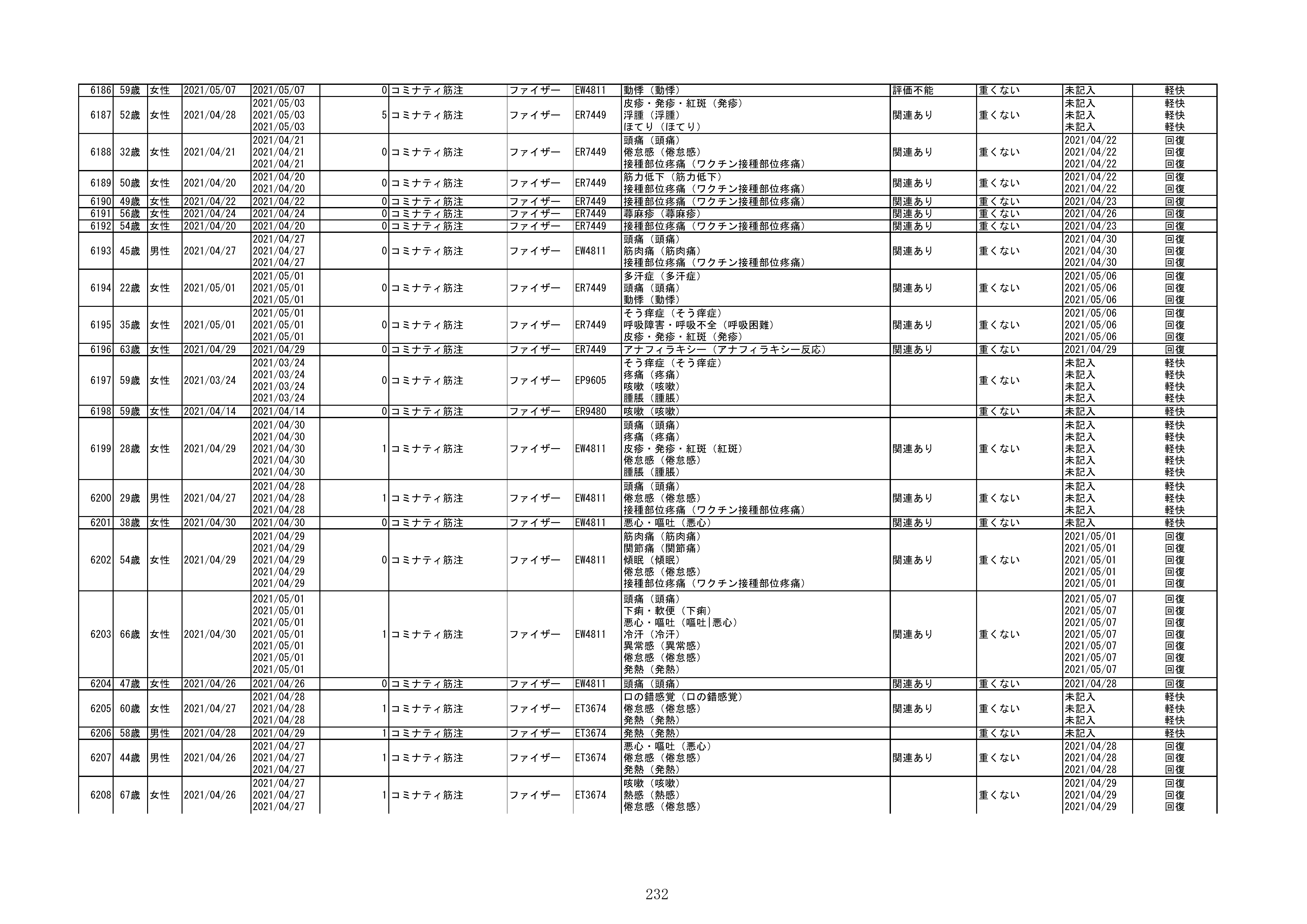 資料1-1-2-1 予防接種法に基づく医療機関からの副反応疑い報告状況について(コミナティ筋注・報告症例一覧)