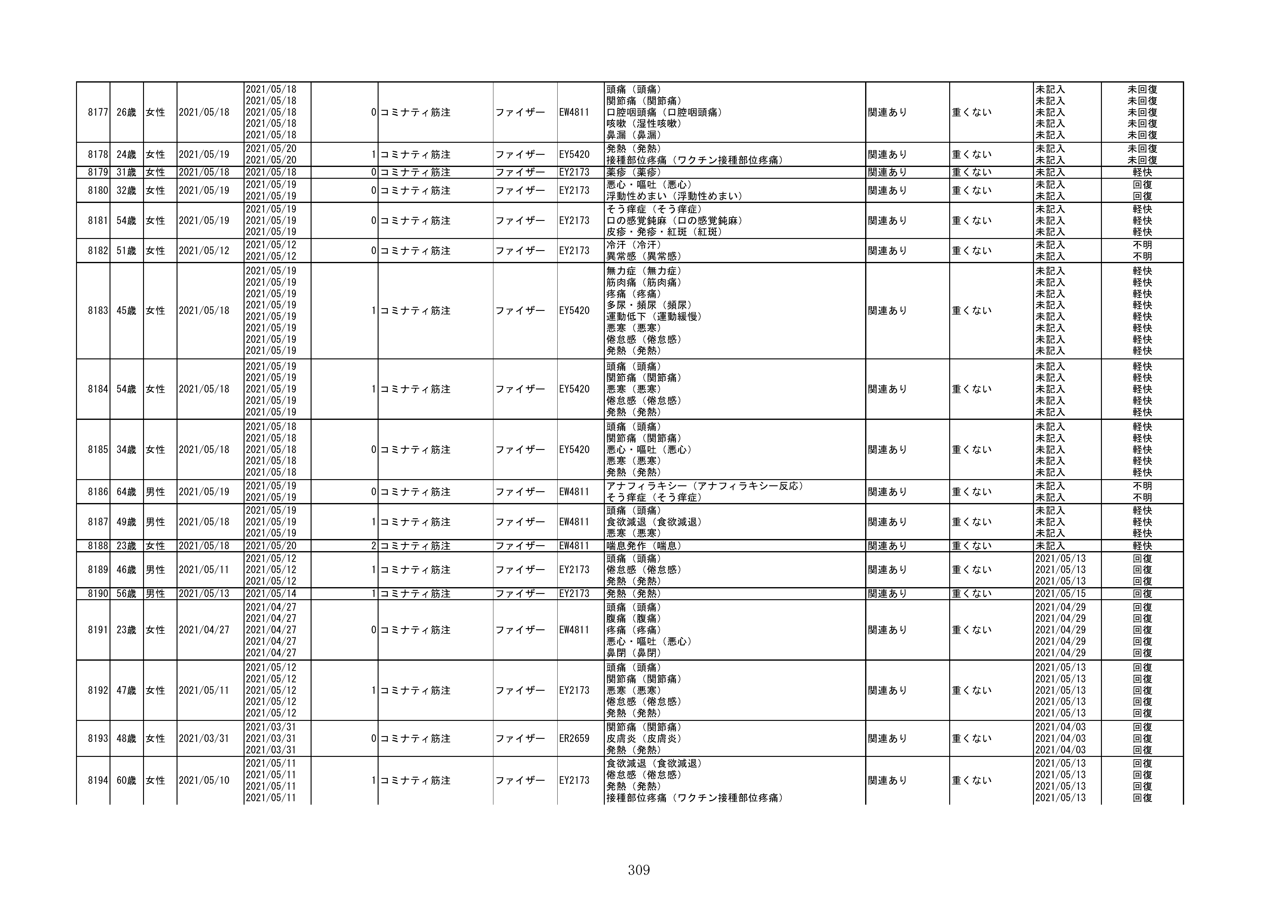 資料1-1-2-1 予防接種法に基づく医療機関からの副反応疑い報告状況について(コミナティ筋注・報告症例一覧)