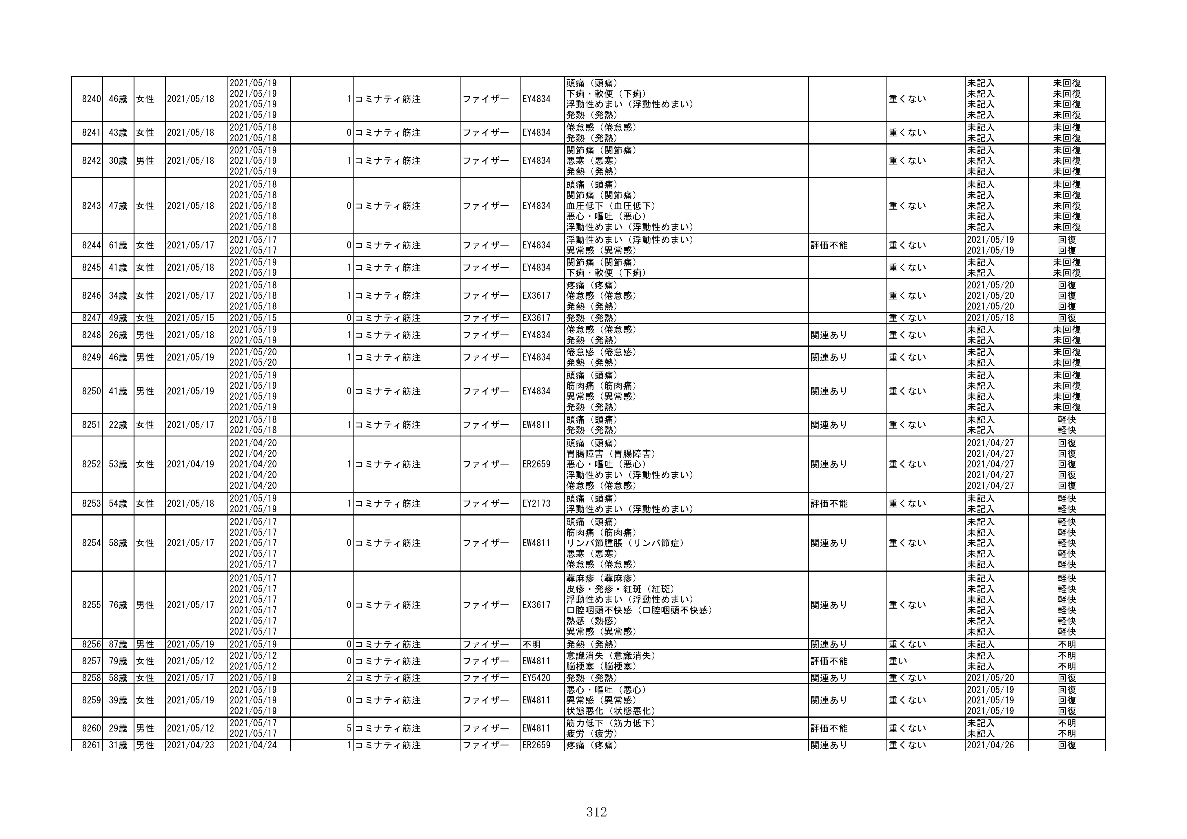資料1-1-2-1 予防接種法に基づく医療機関からの副反応疑い報告状況について(コミナティ筋注・報告症例一覧)