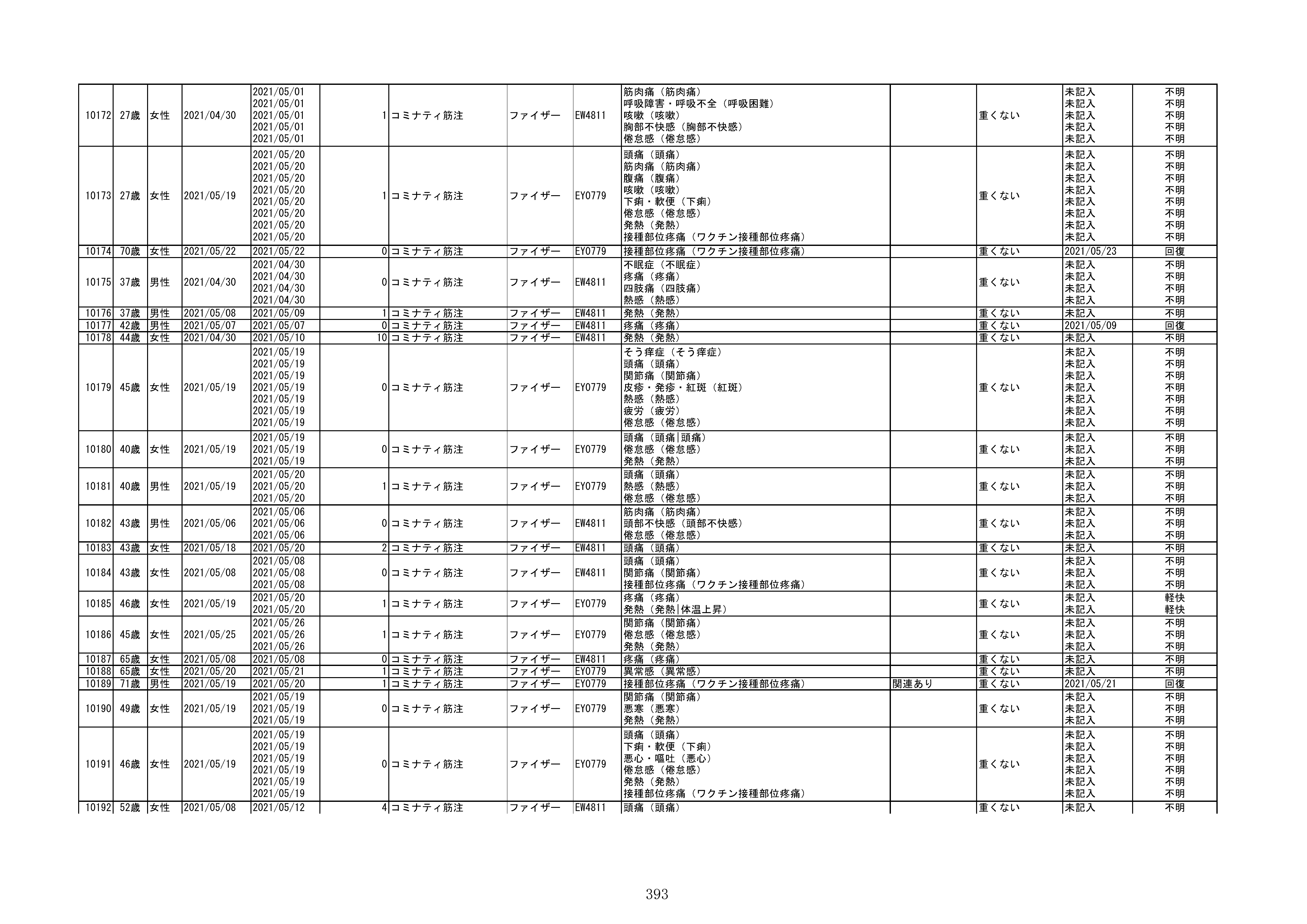資料1-1-2-1 予防接種法に基づく医療機関からの副反応疑い報告状況について(コミナティ筋注・報告症例一覧)