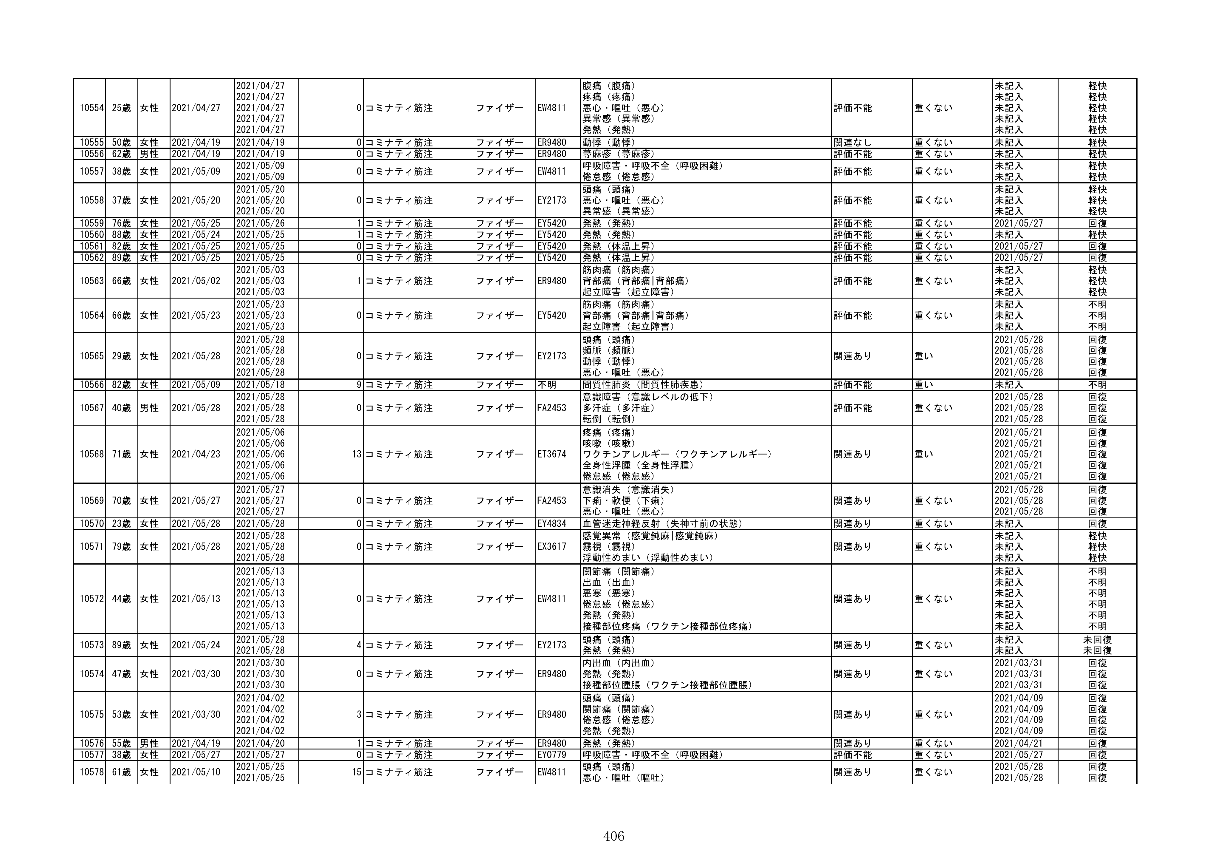 資料1-1-2-1 予防接種法に基づく医療機関からの副反応疑い報告状況について(コミナティ筋注・報告症例一覧)