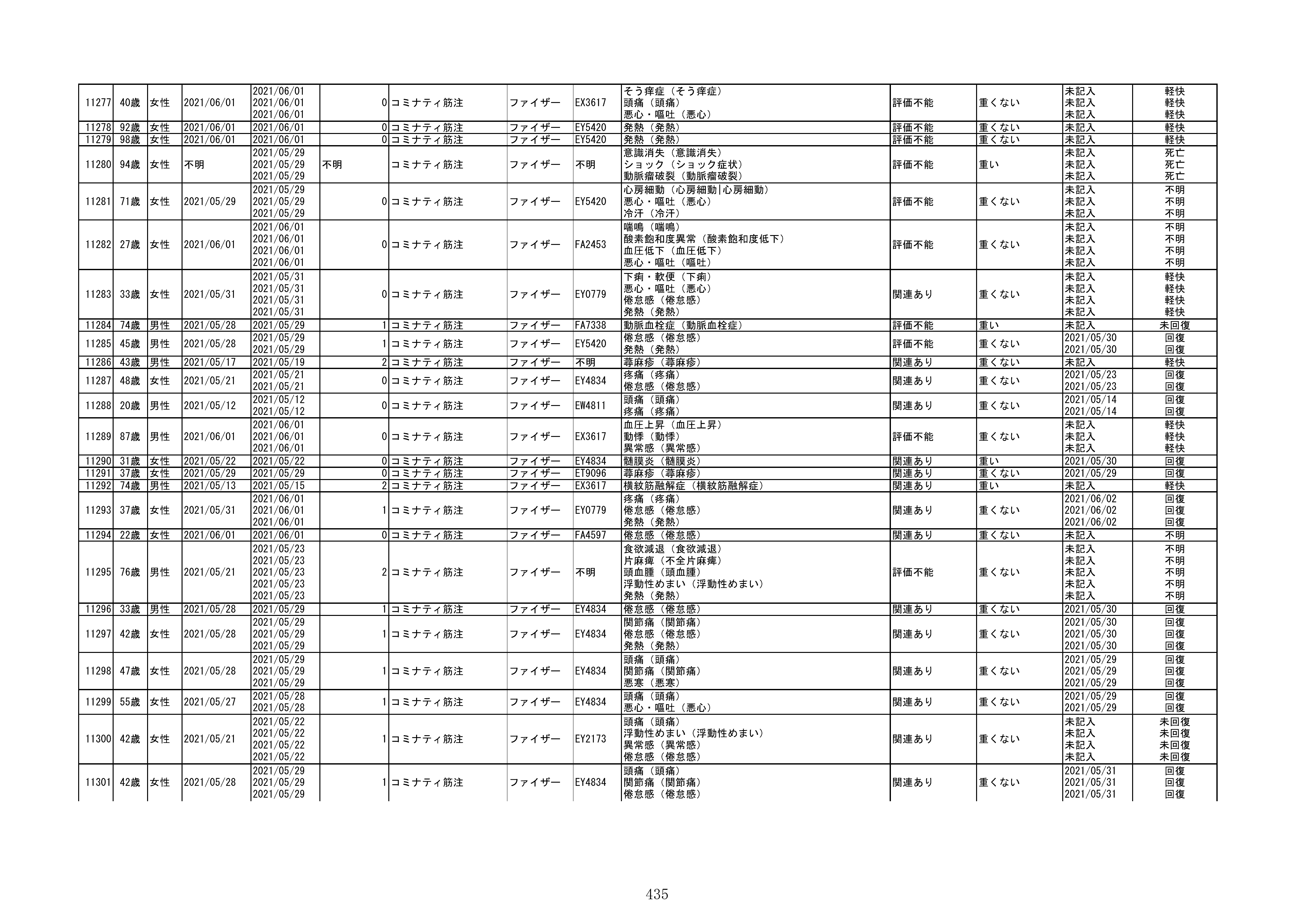 資料1-1-2-1 予防接種法に基づく医療機関からの副反応疑い報告状況について(コミナティ筋注・報告症例一覧)
