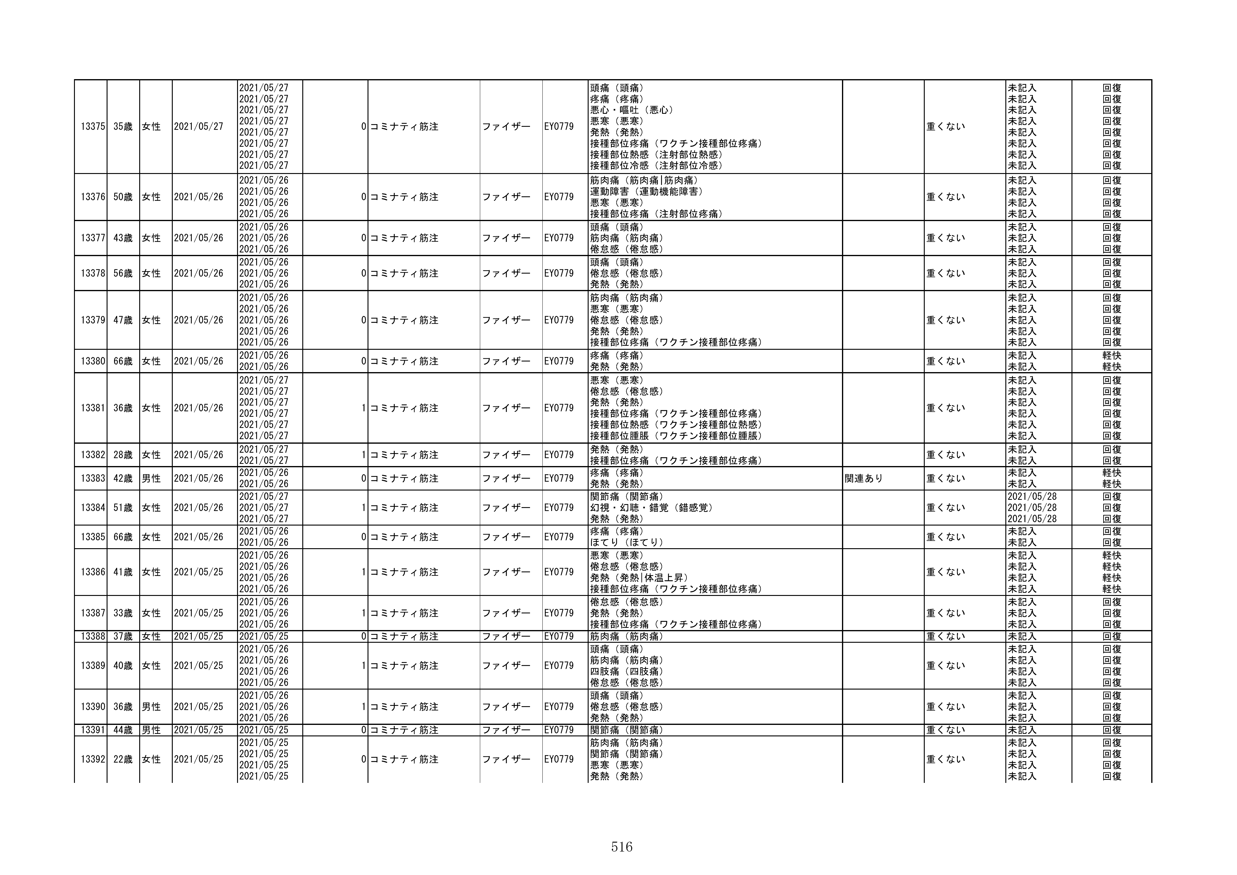 資料1-1-2-1 予防接種法に基づく医療機関からの副反応疑い報告状況について(コミナティ筋注・報告症例一覧)