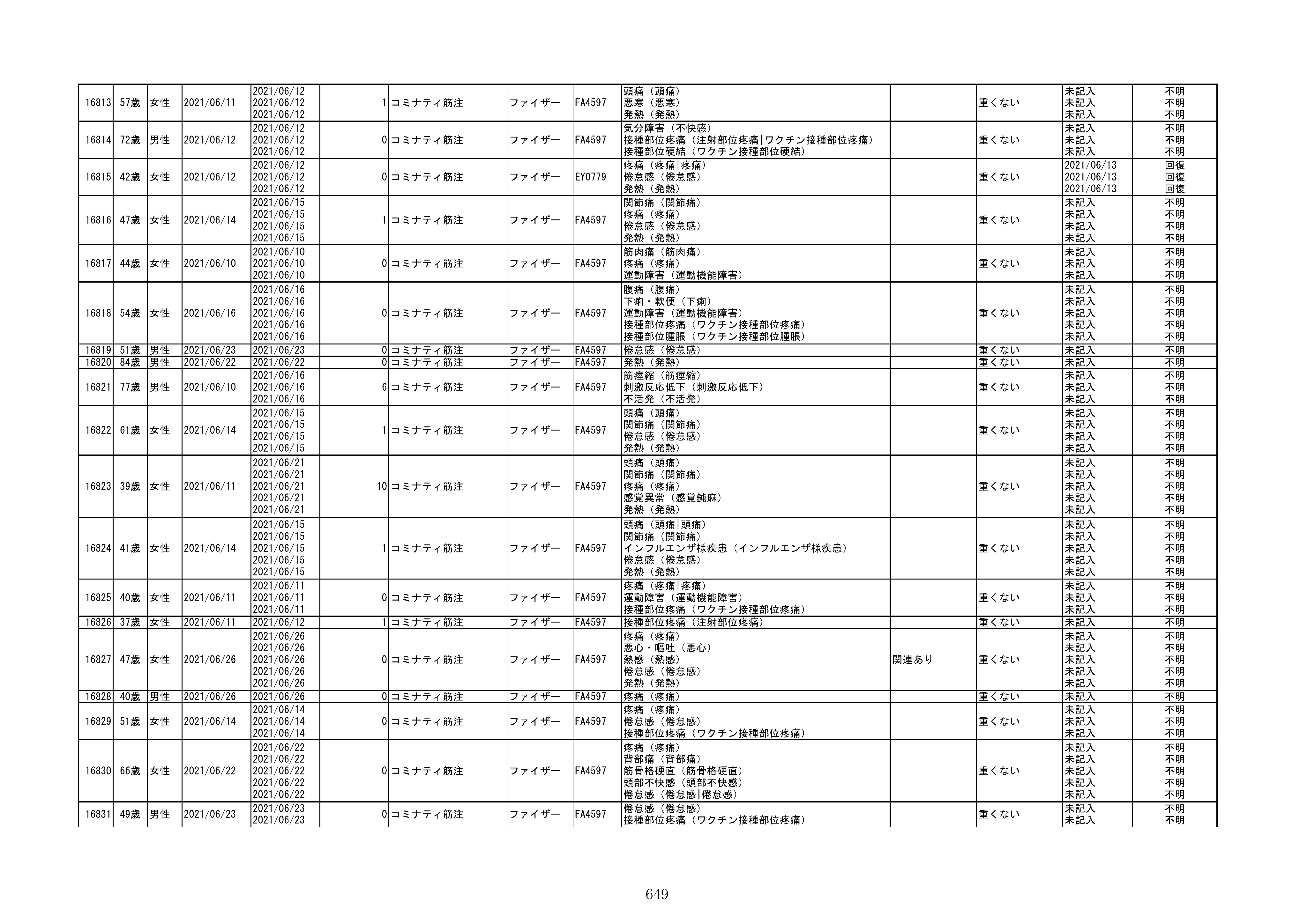 資料1-1-2-1 予防接種法に基づく医療機関からの副反応疑い報告状況について(コミナティ筋注・報告症例一覧)