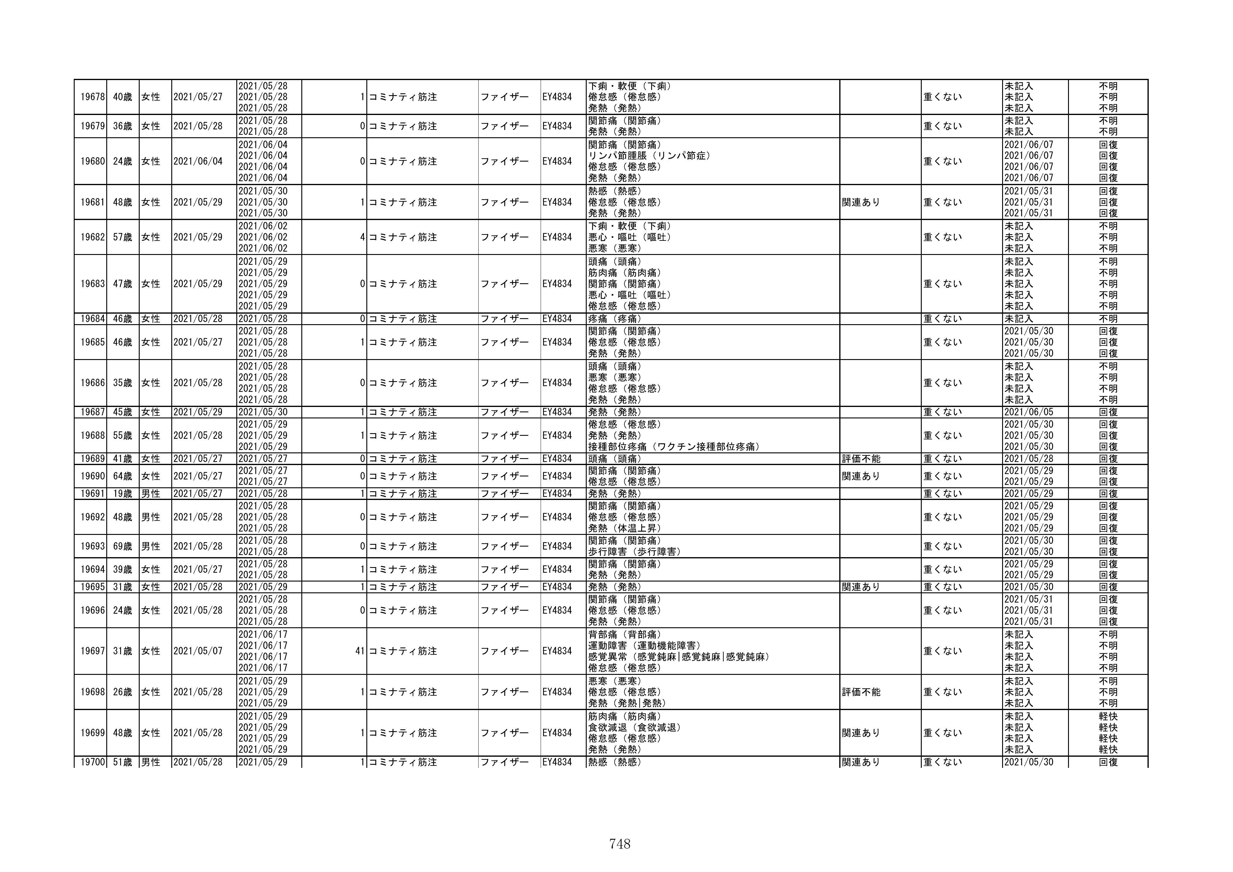 資料1-1-2-1 予防接種法に基づく医療機関からの副反応疑い報告状況について(コミナティ筋注・報告症例一覧)