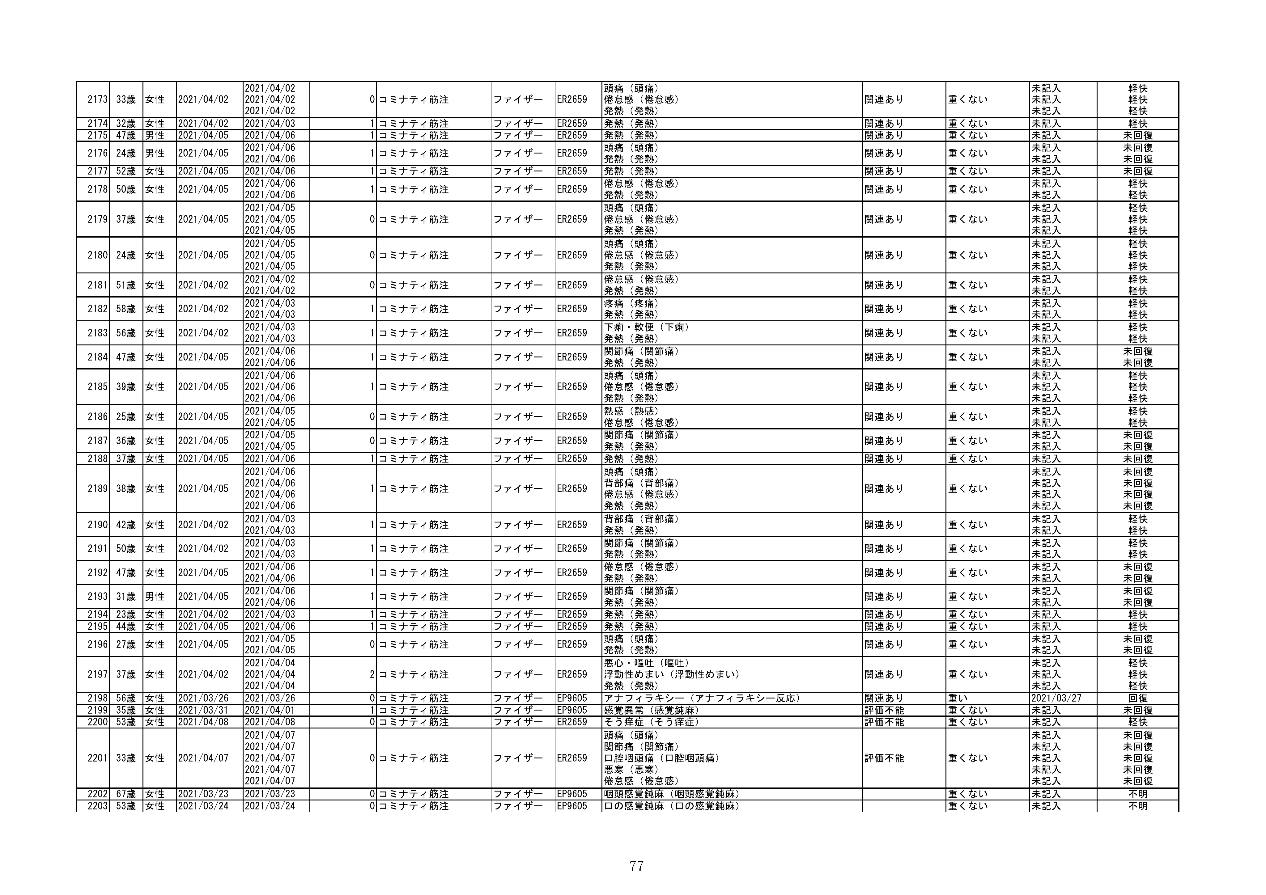 資料1-1-2-1 予防接種法に基づく医療機関からの副反応疑い報告状況について(コミナティ筋注・報告症例一覧)