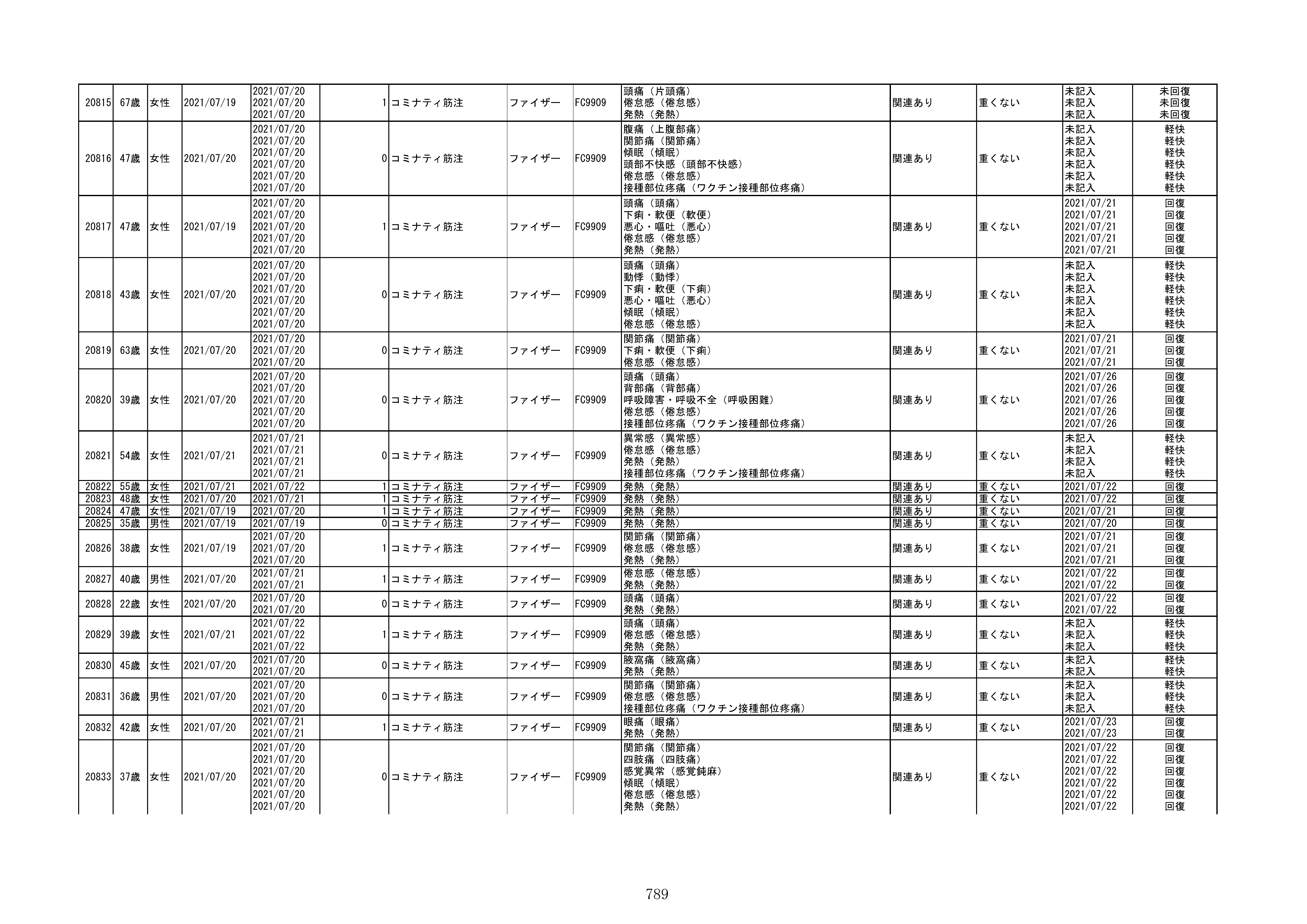 資料1-1-2-1 予防接種法に基づく医療機関からの副反応疑い報告状況について(コミナティ筋注・報告症例一覧)