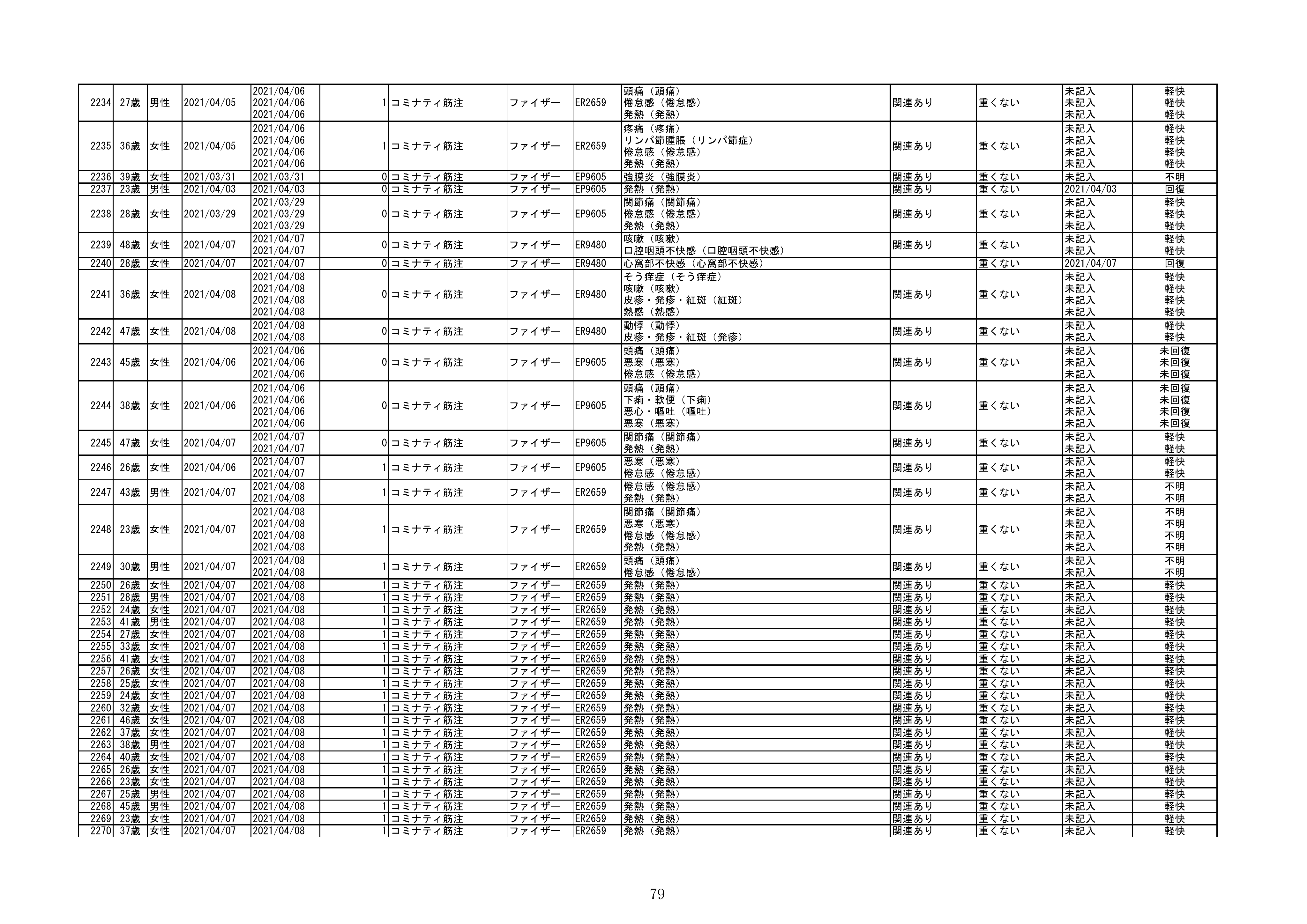 資料1-1-2-1 予防接種法に基づく医療機関からの副反応疑い報告状況について(コミナティ筋注・報告症例一覧)