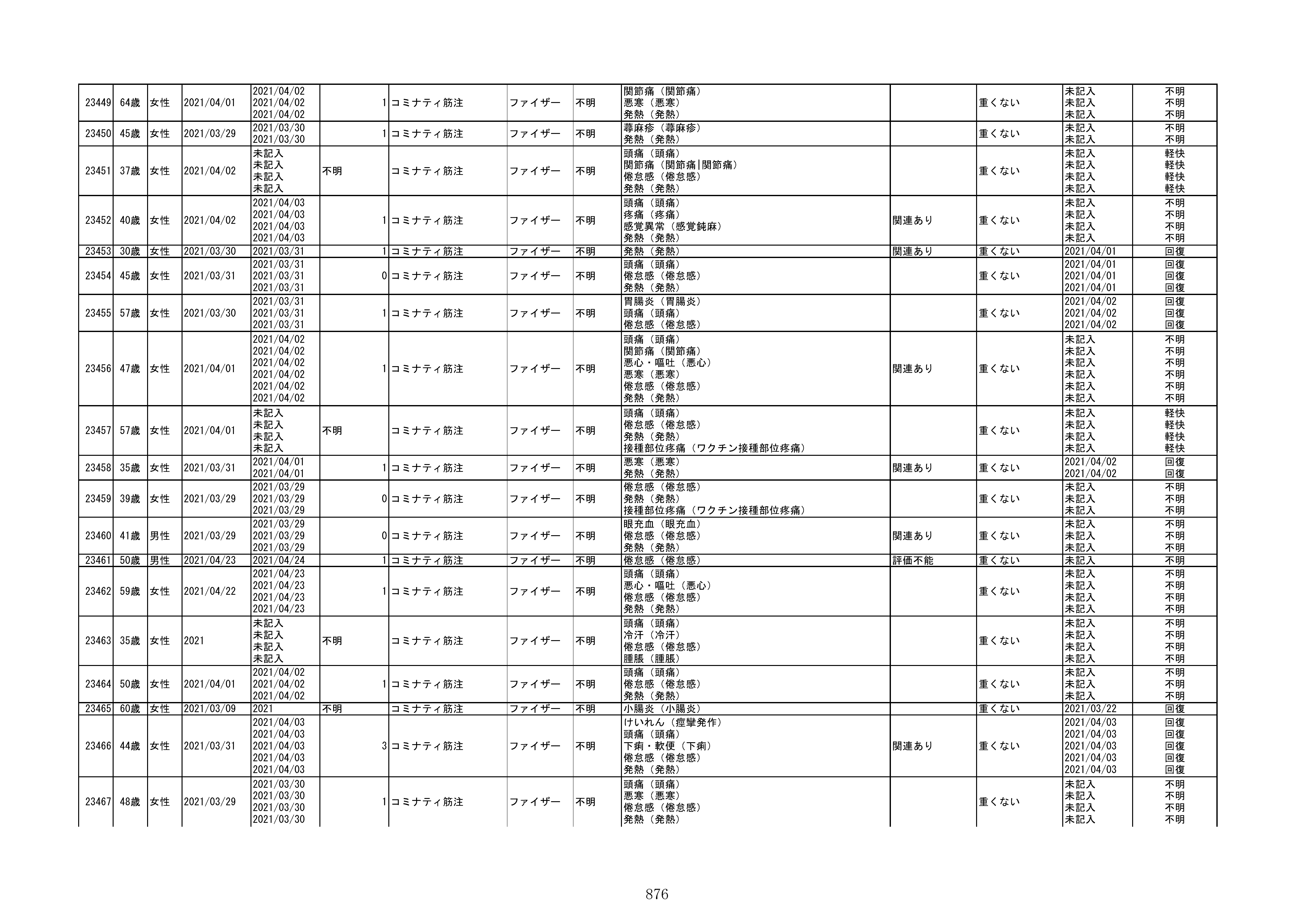 資料1-1-2-1 予防接種法に基づく医療機関からの副反応疑い報告状況について(コミナティ筋注・報告症例一覧)