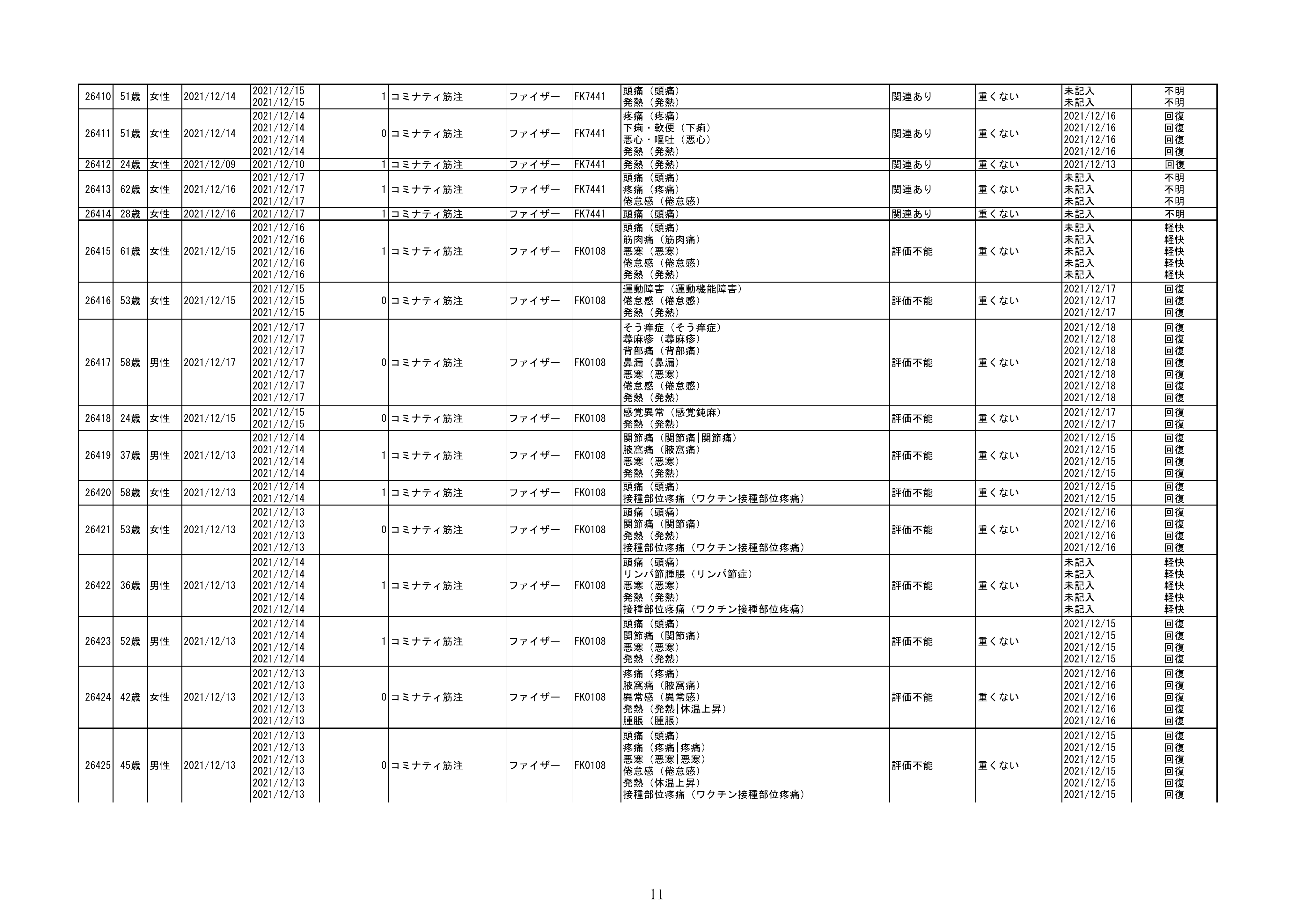 資料1-1-2-1 予防接種法に基づく医療機関からの副反応疑い報告状況について(コミナティ筋注・集計対象期間における報告症例一覧)