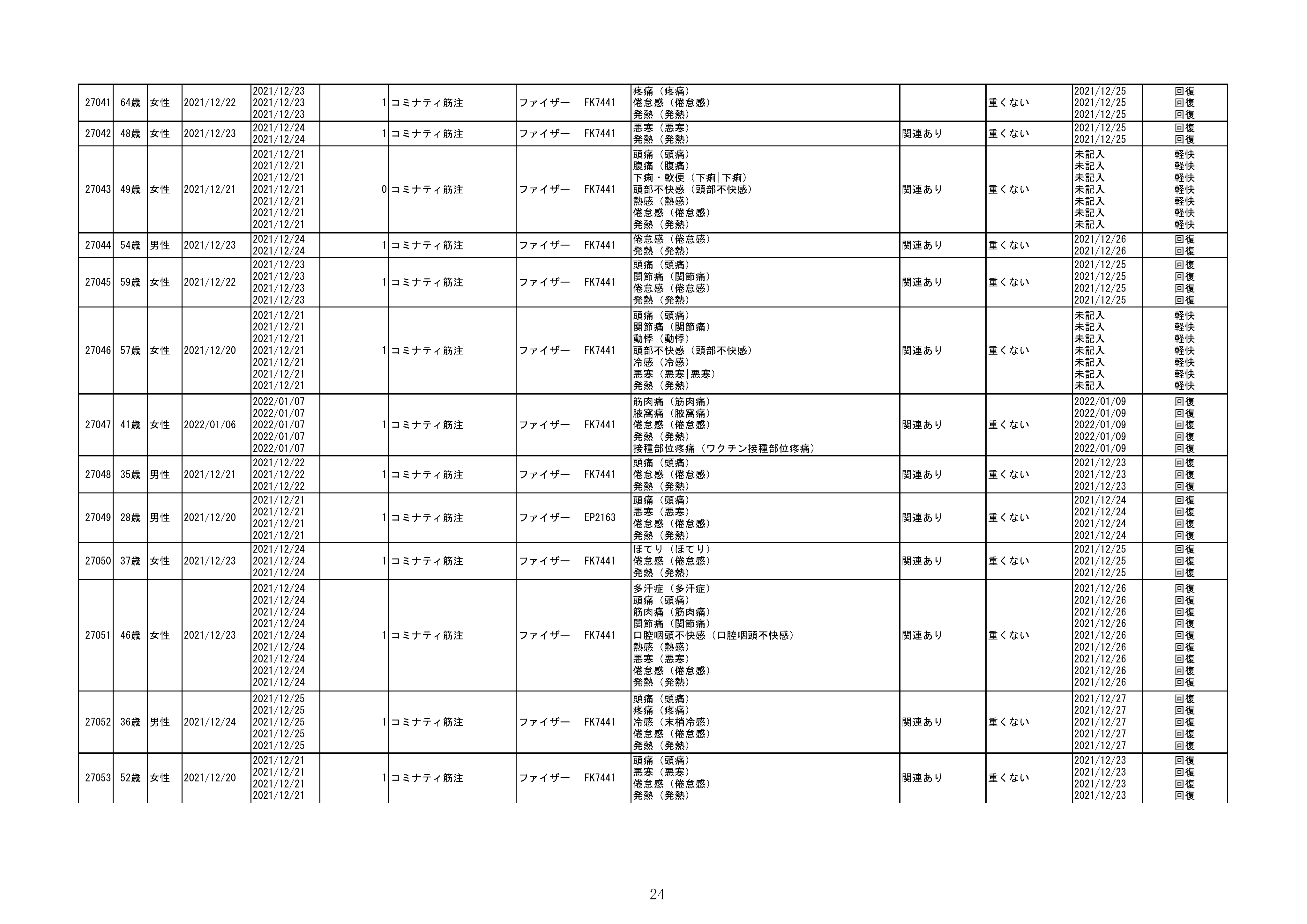 資料1-1-2-1 予防接種法に基づく医療機関からの副反応疑い報告状況について(コミナティ筋注・集計対象期間における報告症例一覧)